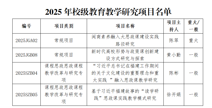 近日,根据《关于公布2025年校级本科教育教学研究、案例(库)、课程思政教学名师等项目评选结果的通知》(商院教务〔2025〕11 号)文件精神,beat365获得校级教育教学研究项目4 项,本科教学案例库3项,具体名单如下: