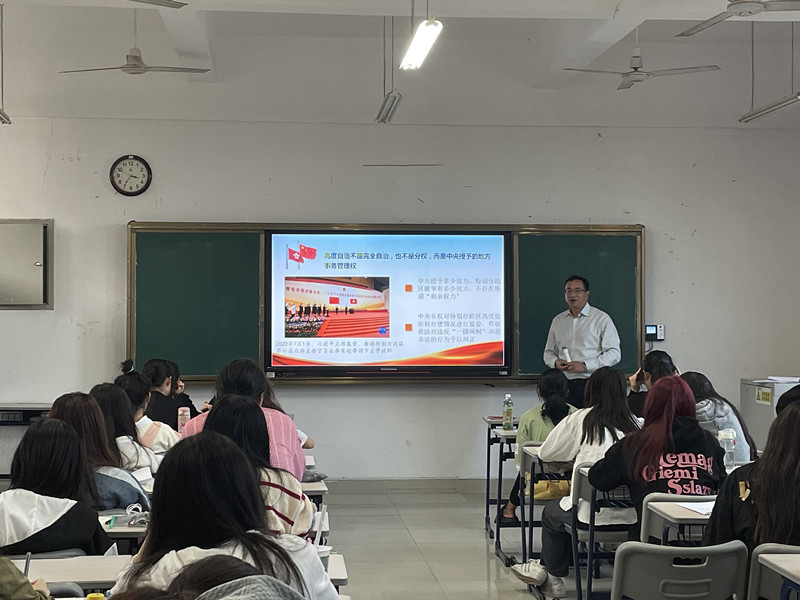 蒲文庆副校长运用鲜活的故事、形象生动的比喻对专题深入浅出的讲解,深受学生喜欢,学生们纷纷表示听完这堂思政课后对“一国两制”有了更全面深刻的认知,今后将通过对党的二十大精神的学习、领会,更好的理解和把握党和国家的方针政策。