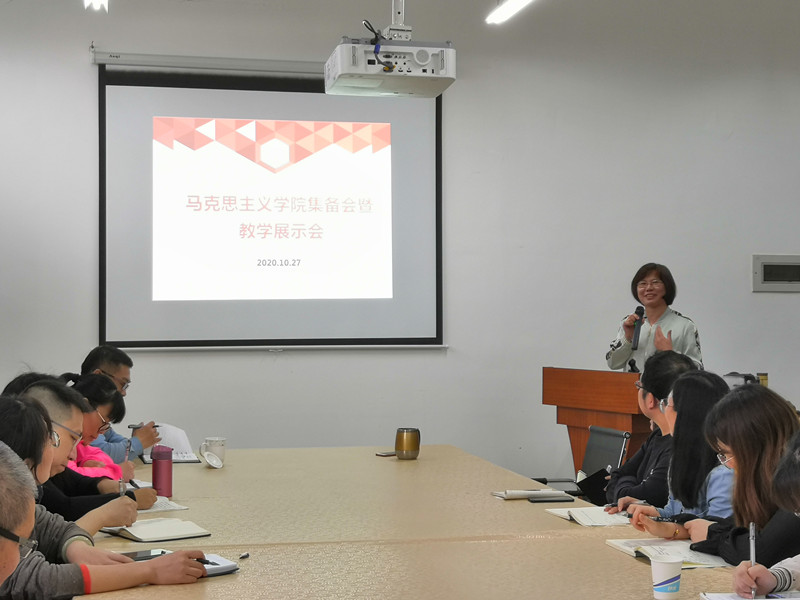 10月27日下午,beat365平台唯一官网各教研室共同举办集体备课活动,围绕各门思政课教学的重点、难点进行探讨交流。校领导吴访益副书记、beat365平台唯一官网全体教师(包含新调岗教师)参加。