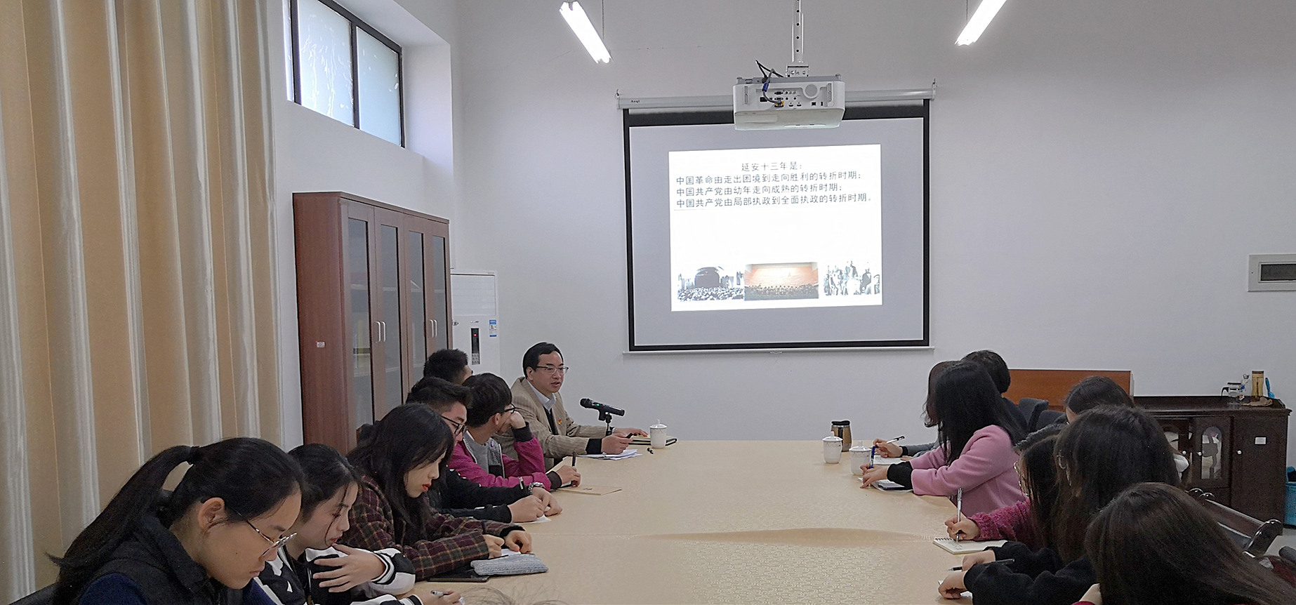 1月2日上午,副校长蒲文庆在beat365平台唯一官网会议室给财务与会计学院习近平新时代中国特色社会主义思想读书社学生上了一堂题为《中国革命成功的延安之路——中共中央延安十三年》的思政课。财务与会计学院、beat365平台唯一官网部分老师以及读书社成员参加了此次学习。