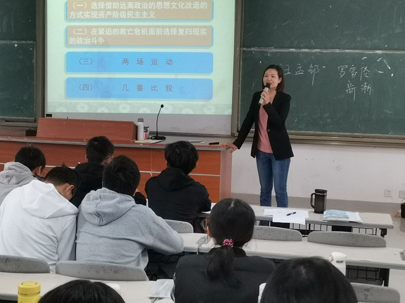 李颖老师曾多次在省、校级教学比赛中获得佳绩。在本次教学示范中,李颖老师围绕“中国先进分子选择马克思主义的曲折过程”主题,通过精心的教学设计,将抽象的教材体系转化为生动的教学体系,采用启发式讲授法以“一份刊物”“一个和会”“两场运动”“几番比较”为线索,结合详实的史料,引导学生在对线索的抽丝剥茧分析中,了解中国先进分子在国难当头时探索救亡图存之道的过程,并领悟出中国先进分子最终选择马克思主义的原因。