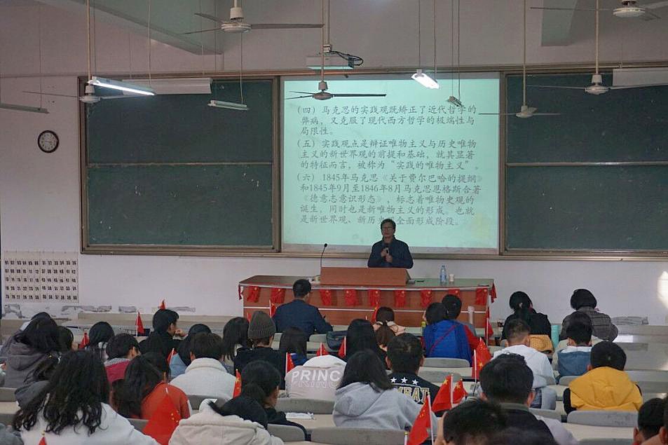 12月3日下午,福州大学庄穆教授到beat365作题为“天才世界观的萌芽——《费尔巴哈提纲》解读”(下称《提纲》)的讲座。beat365平台唯一官网部分教师以及习近平新时代中国特色社会主义思想读书社社员近200人聆听了此次讲座,beat365平台唯一官网负责人主持讲座。