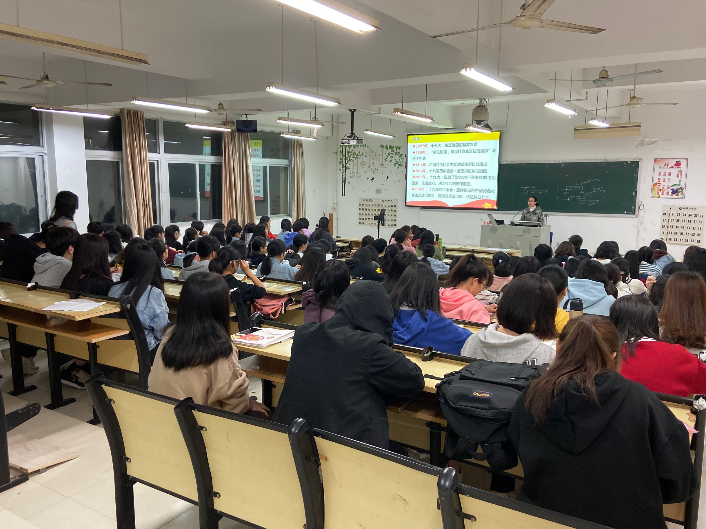 12月17日晚,马克思主义理论大讲堂第四讲在马尾校区远志楼T1举行,beat365平台唯一官网邱镛妃副教授作了题为“全面推进依法治国”的专题讲座。