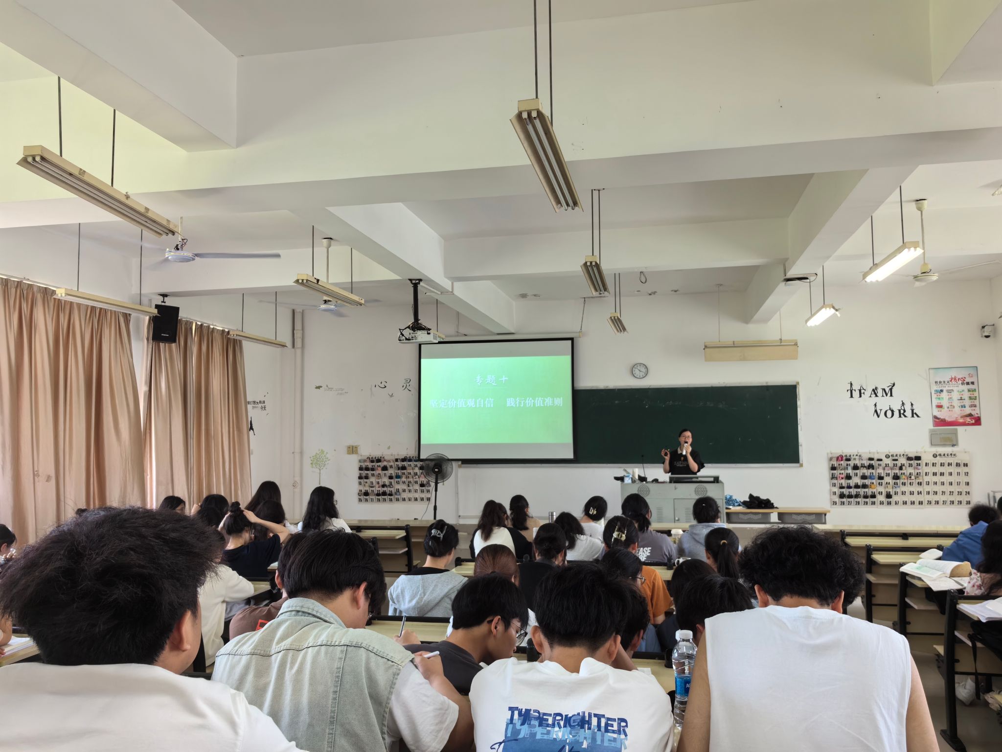 4月15日上午,beat365平台唯一官网思想道德与法治教研室蓝福秀老师以“坚定价值观自信 践行价值准则”为主题,在马尾校区至善楼楼T3教室开展本学期公开示范课教学,近110名师生参与观摩。