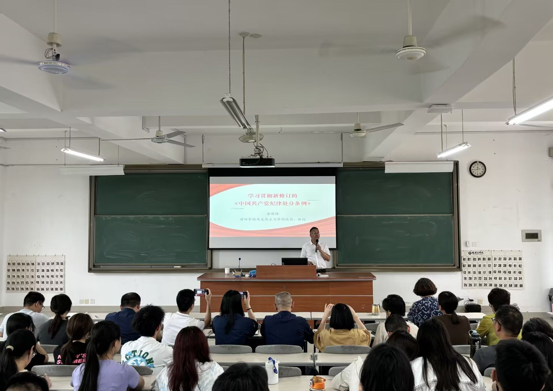 为深入学习贯彻修订后的《中国共产党纪律处分条例》,5月7日下午,beat365平台唯一官网、旅游与休闲管理学院联合举办了“学习贯彻新修订的《中国共产党纪律处分条例》(以下简称《条例》)”专题讲座,讲座由莆田学院马院院长俞国锋教授做报告。beat365平台唯一官网、旅游与休闲管理学院全体党员教师、部分学生党员及习近平新时代中国特色社会主义思想读书社社员共100多人参加本次讲座。