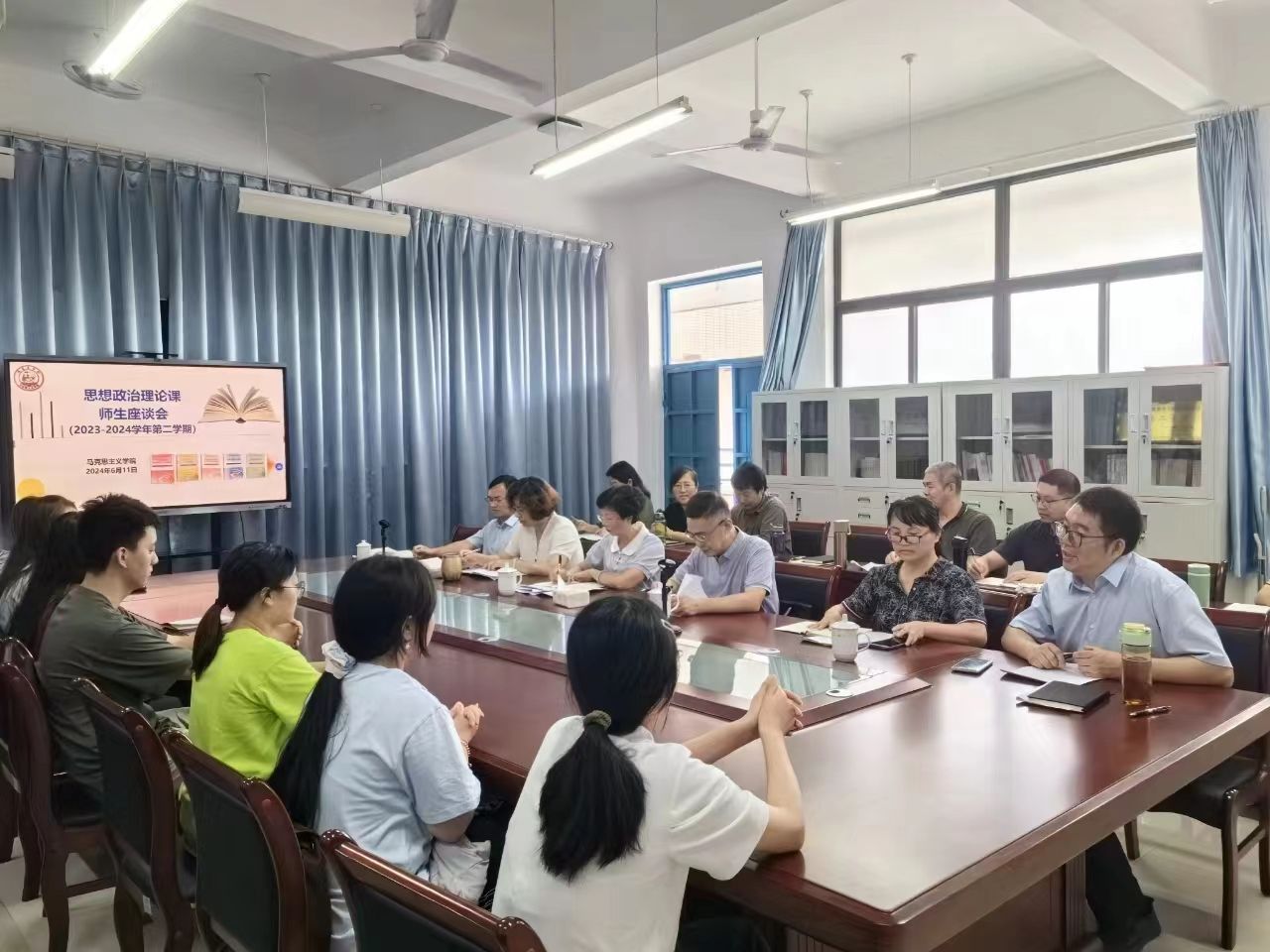 6月11日下午,beat365在连江校区召开2023-2024第二学期思想政治理论课师生座谈会,深入学习贯彻习近平总书记对学校思政课建设重要指示精神,探讨如何推动新形势下思政课建设工作。校党委书记吴访益、副校长林文艺、校质量监控与评估处和教务处有关人员、beat365平台唯一官网党政领导班子、教师代表及连江校区各专业的学生代表参加了会议。