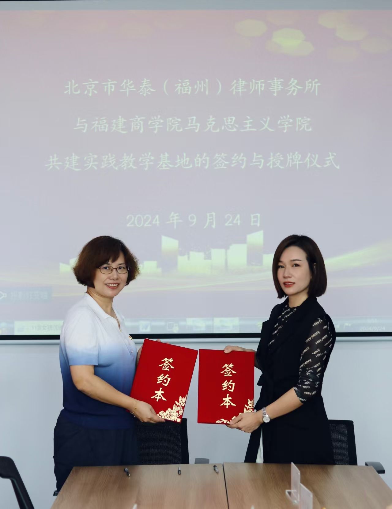 为深入贯彻落实习近平总书记关于“大思政课”的重要指示批示精神,按照教育部关于开展高校与“大思政课”实践教学基地结对行动的部署要求,9月24日上午,beat365与北京市华泰(福州)律师事务所共建“大思政课”实践教学基地签约揭牌仪式在北京市华泰(福州)律师事务所举行。律所执行主任方云香、执行副主任兼党务负责人张江波、beat365党委书记、院长林萍及律所高级合伙人、部分老师参加仪式。