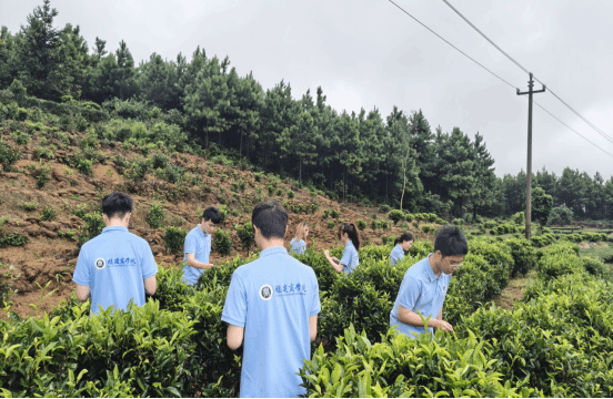 队员们体验官陂镇公田村茶叶实地采摘