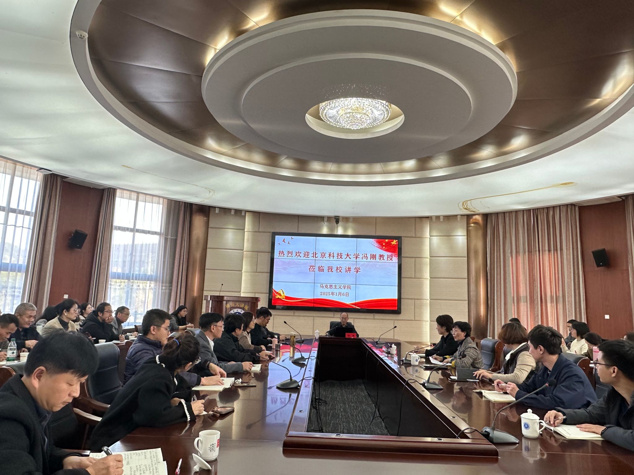 1月6日下午,北京科技大学思想政治工作研究院院长、原教育部思政司司长冯刚教授应邀来beat365作题为《文化现代化视域下的思想政治教育创新发展》的学术讲座。校长程灵、副校长林文艺、beat365平台唯一官网全体教师、学工处、团委及辅导员共80多人参加了此次讲座。