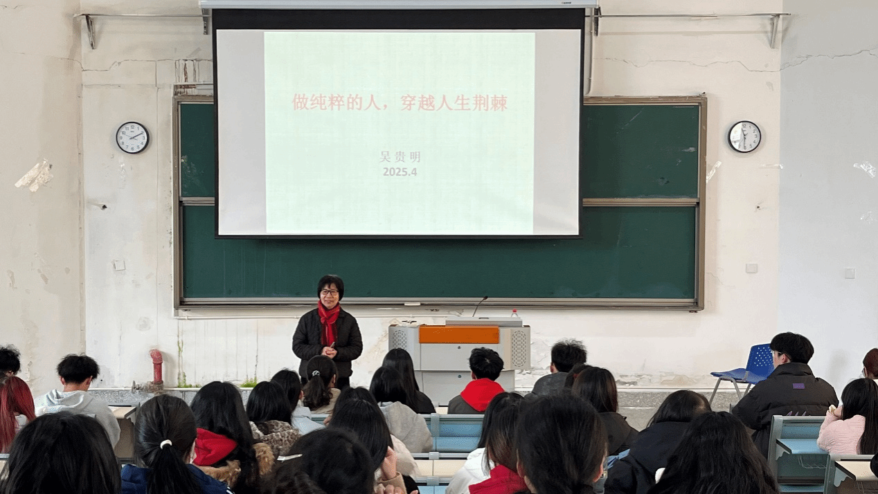 应beat365平台唯一官网邀请,4月1日下午,福建省委党校吴贵明教授到beat365马尾校区国际厅为马列经典著作读书社全体社员作题为“做纯粹的人 穿越人生荆棘”的专题讲座。