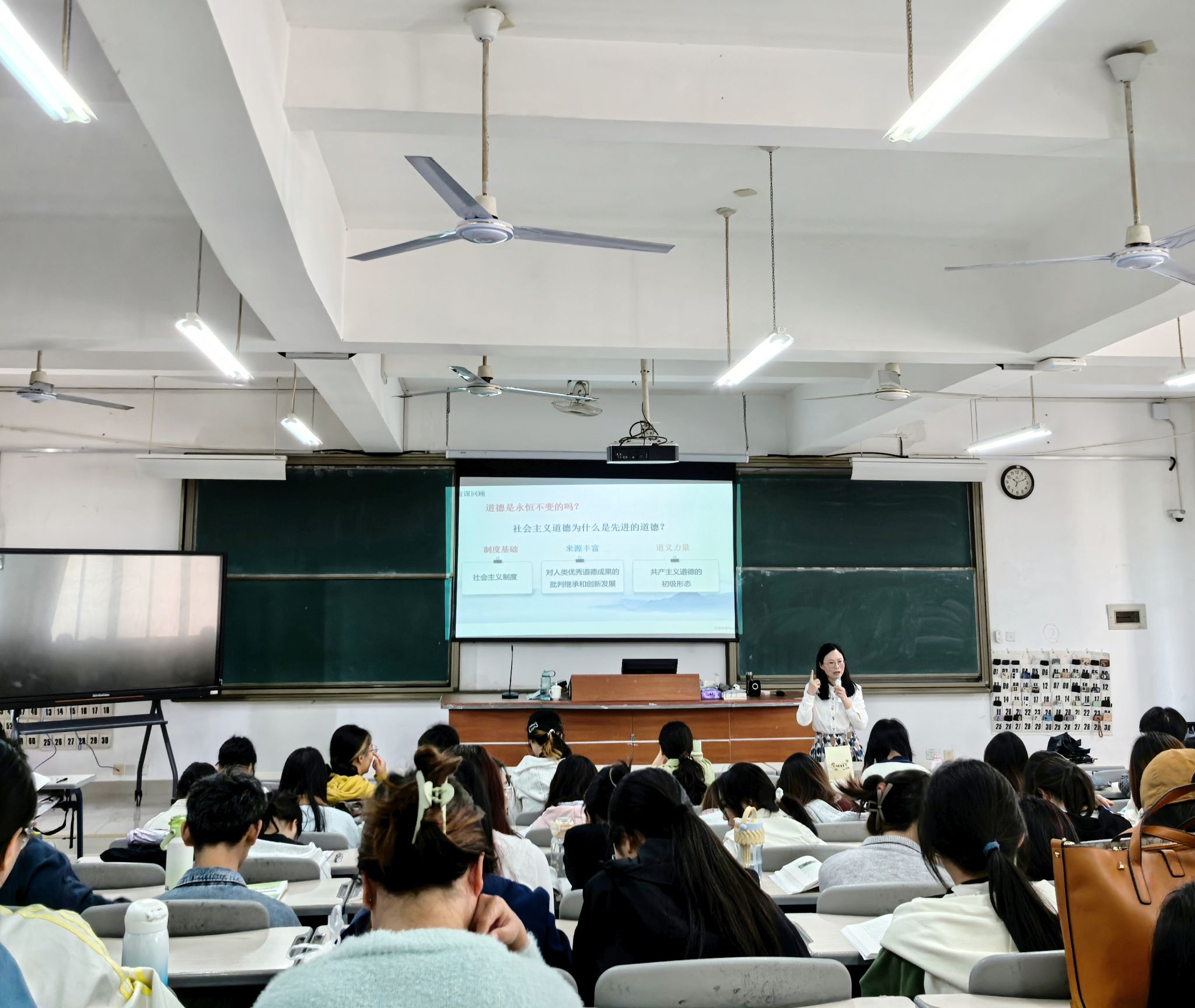 4月14日上午,beat365平台唯一官网思想道德与法治教研室徐开娟老师在连江校区诚信楼中阶2开展以“传承中华传统美德 发扬中国革命道德”为主题的公开课。