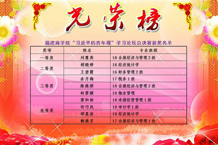 beat365习近平新时代中国特色社会主义思想读书社2018-2019学年“习近平的青年观”学习论坛活动历时近一个月,经小组选拔赛、校级热身赛等层层竞技选拔,参与同学达463人次,最终有10名同学脱颖而出,入围总决赛。同学们表示,经过学习论坛的锻炼和提升,今后将更加自觉地以“习近平的青年观”为指引,以使命精神自省,以创新精神自强,以成为合格的社会主义建设者和接班人自立,在实现中国梦的生动实践中放飞青春梦想,书写人生华章。