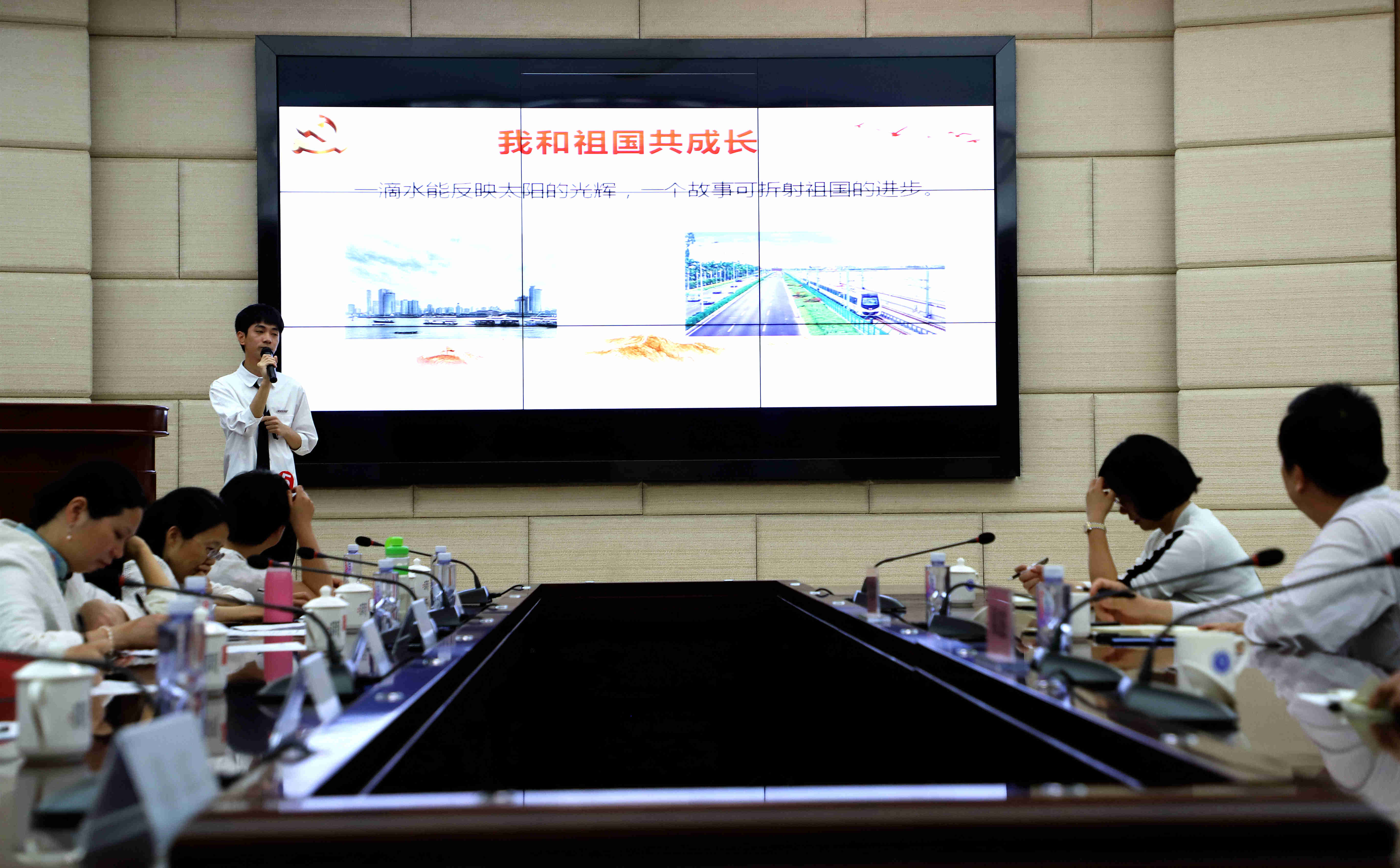 5月21日下午,beat365习近平新时代中国特色社会主义思想读书社,在连江校区明德楼视频会议室举办“我与祖国共成长”五月学习论坛总决赛。校党委书记刘剑津,副书记吴访益,beat365平台唯一官网全体教师,读书社学生代表等近100人参加了此次活动。