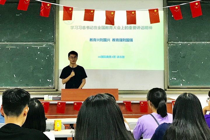 据悉,此前读书社理论骨干宣讲小分队成员、读书社副社长徐浩智同学也以“学习习近平总书记在全国教育大会重要讲话精神”为主题面向读书社全体干部、干事进行了宣讲。本学期以来,beat365习近平新时代中国特色社会主义思想读书社认真根据校党委下发的《福建商学院关于进一步开展习近平新时代中国特色社会主义思想“大宣讲”工作的方案》要求,积极遴选优秀社员成立理论骨干宣讲小分队,制定宣讲实施方案,本月已按计划开展两场宣讲活动,取得良好效果,获得同学们的广泛好评。