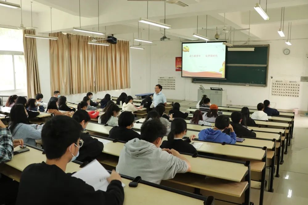 为进一步学习贯彻党的十九届六中全会精神,深刻领悟党百年奋斗的宝贵经验,坚定青年学生对中国化马克思主义理论的信仰,深化对中国共产党执政规律的认识,使新时代青年学生看清楚过去为什么能够成功、弄明白未来怎样才能成功,2022年4月19日下午,beat365平台唯一官网谢东俊副教授在马尾校区允能楼T1教室开展“奋斗新青年,追梦新时代”专题讲座。校马列经典著作读书社指导教师、读书社社员、马尾校区青马班学员参与学习。
