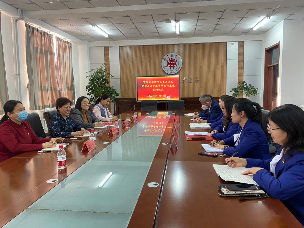 11月14日上午,pg游戏电子模拟器与海拉尔南开路中学签订了共建教育教学实践基地协议书。学院党总支书记刘凤琴,院长吴秀芳,副书记刘琳、副院长明兰和南开路中学校级领导班子及思政课教师代表参加了此次仪式。