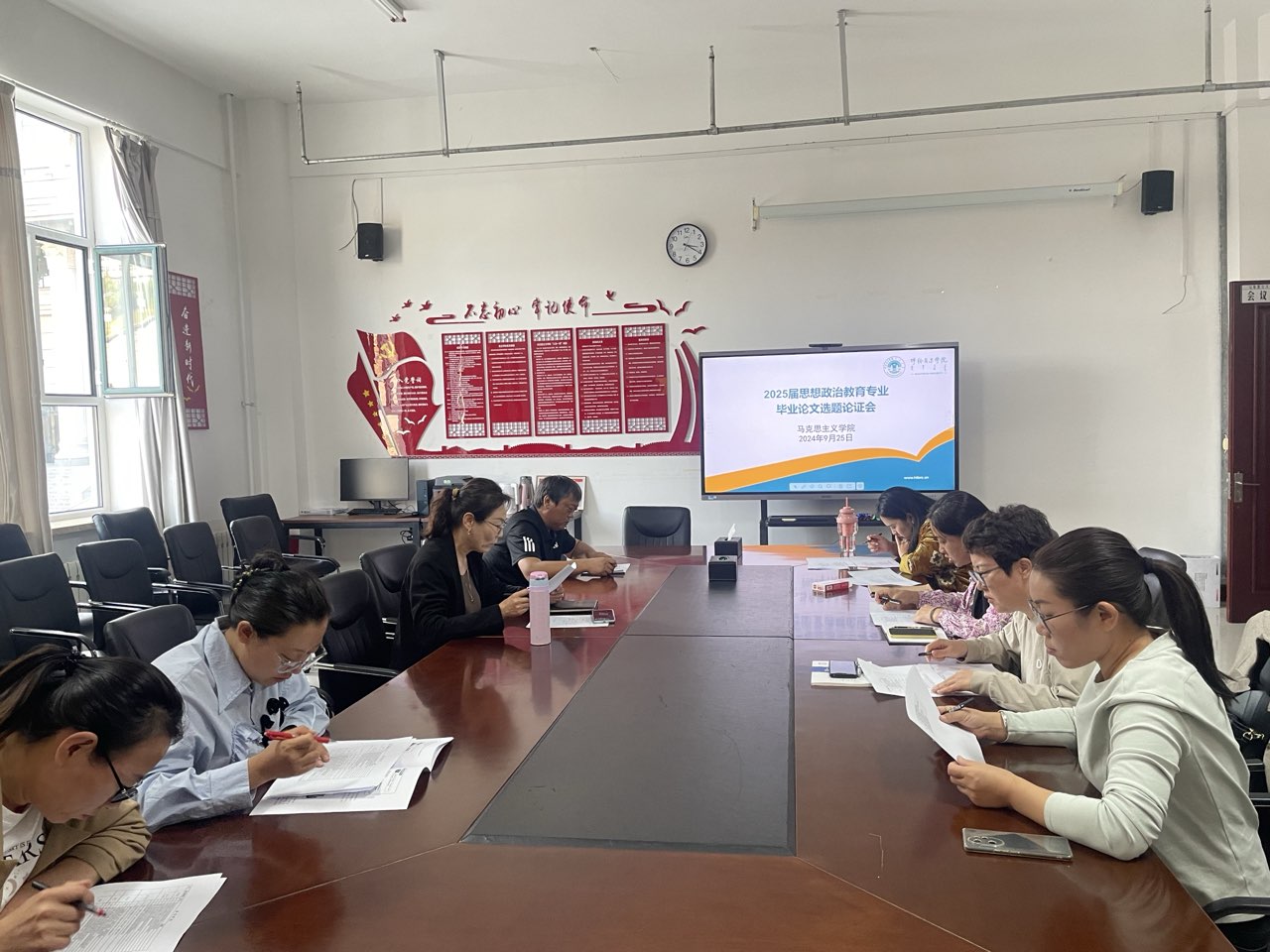 为切实提高本科生毕业论文质量,做好我院2025届思想政治教育专业本科生毕业论文相关工作,9月25日,pg游戏电子模拟器召开2025届思想政治教育专业毕业论文选题论证会,组长吴秀芳、副组长明兰及全体论文指导教师参加会议。