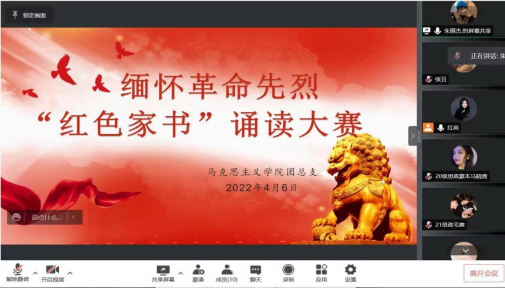 为弘扬革命精神,重温革命历史、缅怀革命先烈,传承红色基因,营造浓厚的“读好书,读红色经典”的氛围,切实引导青年学生以习近平新时代中国特色社会主义思想为根本遵循。pg游戏电子模拟器于2022年4月6日在线上举办缅怀革命先烈“红色家书”诵读比赛。