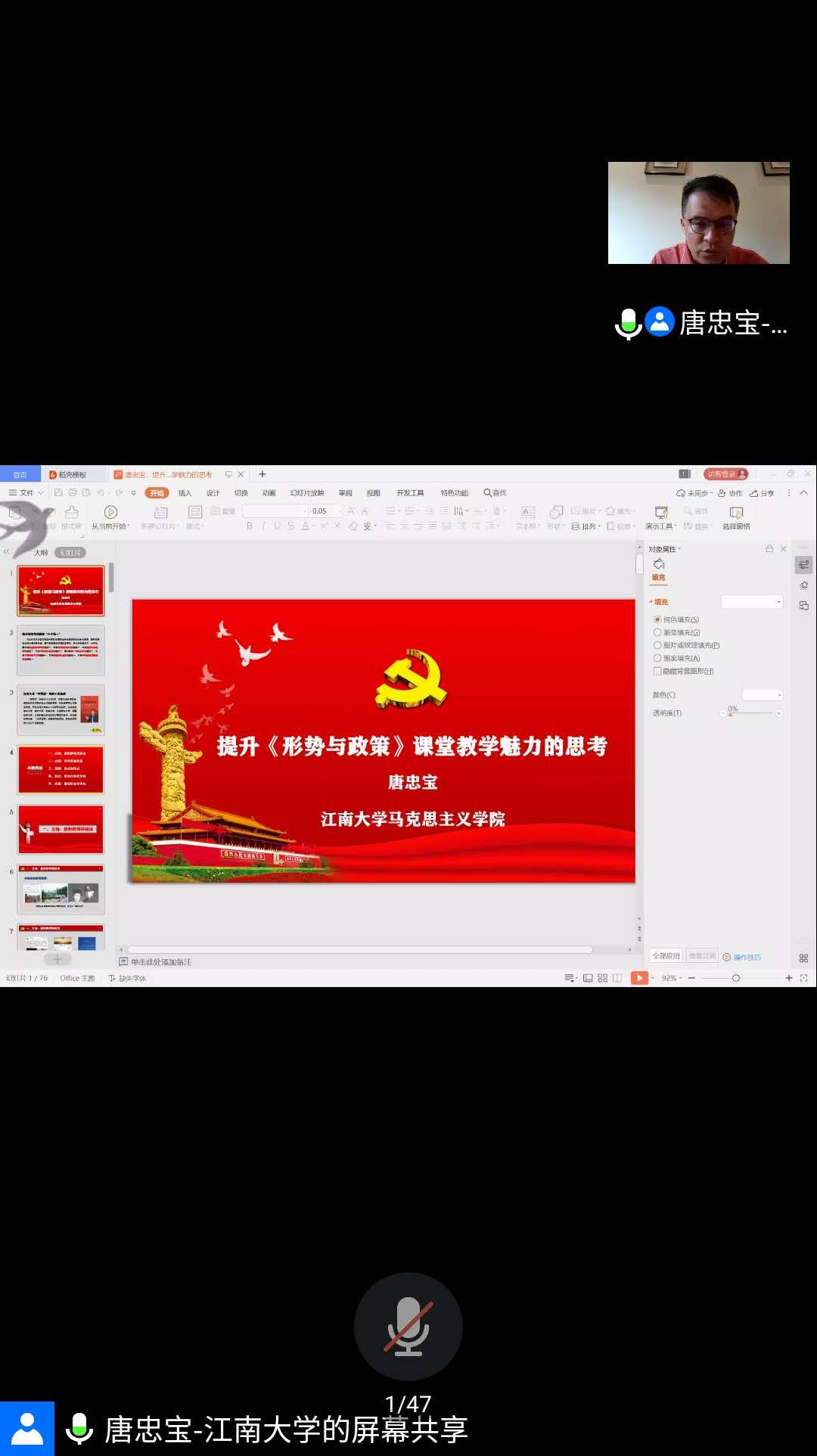7月7日下午两点半,pg游戏电子模拟器“形势与政策”课程组教师通过腾讯会议参加了由内蒙古师范大学主办的内蒙古思政课教师同备一门课——形势与政策课线上集体备课活动。本次活动聘请了江南大学pg游戏电子模拟器教授、哲学博士,教育部首批思政工作精品项目“宝哥说”思政文化育人品牌主讲人唐忠宝教授作了题为“提升《形势与政策》课堂教学魅力的思考”的精彩讲座。