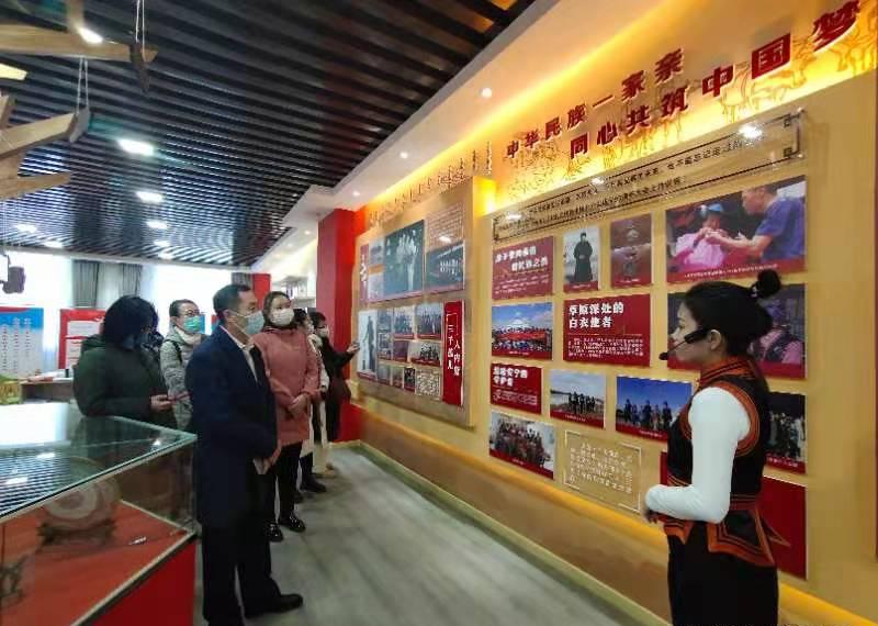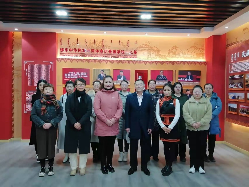 4月7日上午,pg游戏电子模拟器“铸牢中华民族共同体意识”教研室全体教师在教研室主任海龙教授的带领下赴陈旗民族团结进步教育基地进行参观和现场集体备课。陈旗民委副主任乌仁高娃陪同参观。