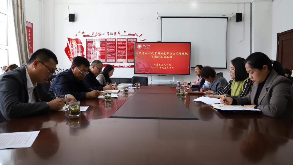 为高质量建设好、讲授好思政课,推动习近平新时代中国特色社会主义思想进教材、进课堂、进头脑,更好的落实立德树人根本任务,2023年9月20日,校党委书记王广利,校党委副书记张宏天,校党委委员、宣传部部长李俏和教务处副处长王继钢深入pg游戏电子模拟器参加《习近平新时代中国特色社会主义思想概论》课程集体备课,会议由pg游戏电子模拟器院长吴秀芳主持,学院全体教师参加备课会。