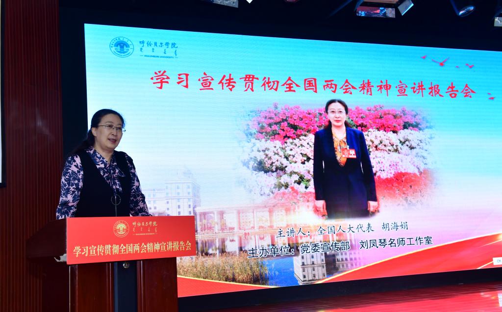 宣讲会上,胡海娟结合参会经历和履职实践,从十四届全国人大三次会议概况、习近平总书记在全国两会期间的重要讲话精神、大会各项报告的主要内容、会议期间内蒙古代表团活动情况以及本人的履职情况等五个方面进行了深入浅出的讲解,对pg游戏学生深刻领会全国两会精神具有很强的指导意义。