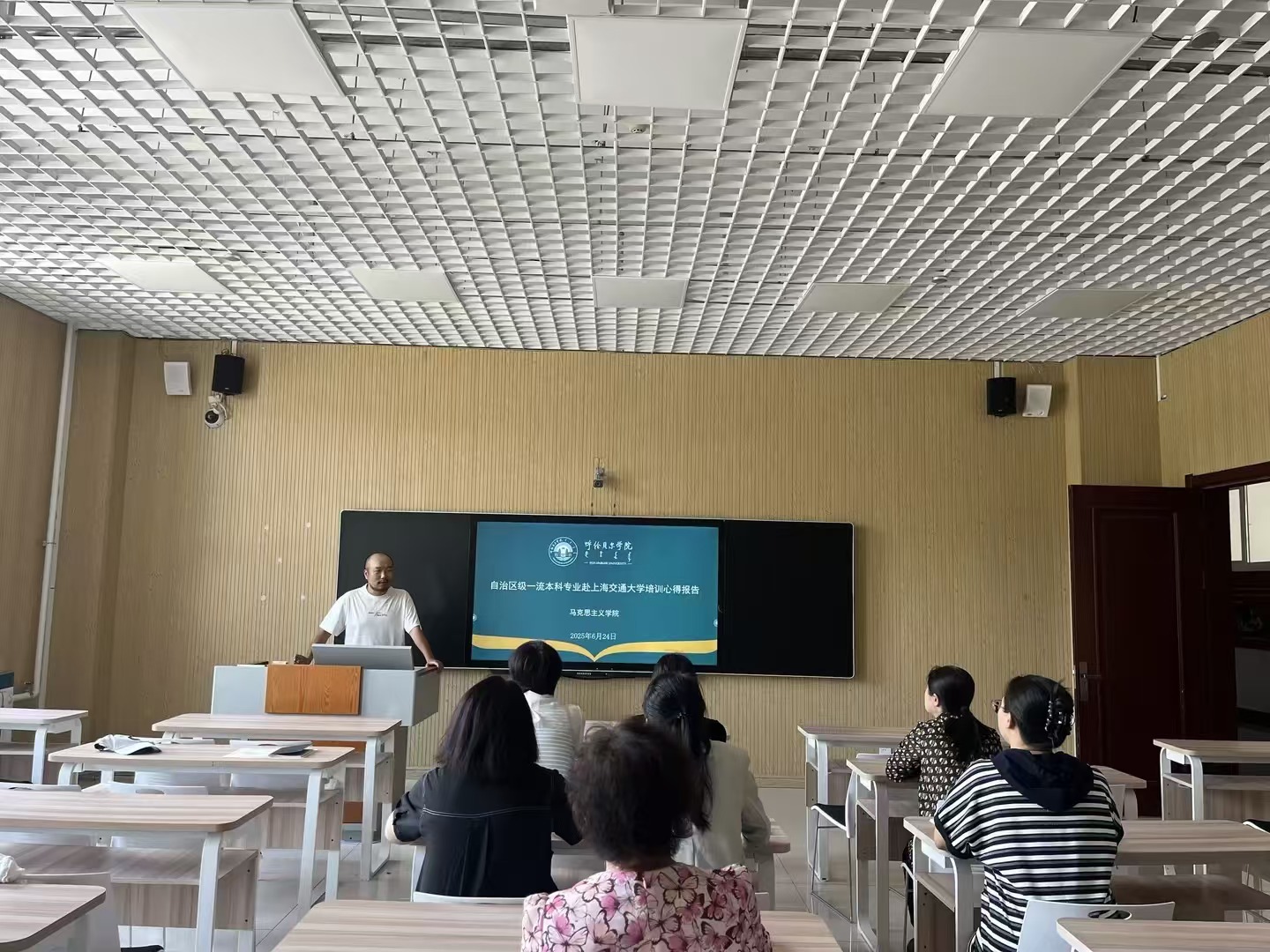 6月24日,pg游戏电子模拟器举行自治区级一流本科专业赴上海交通大学培训经验交流活动,中国近现代史纲要教研室主任张舒老师重点围绕三个方面介绍了本次培训的心得体会。