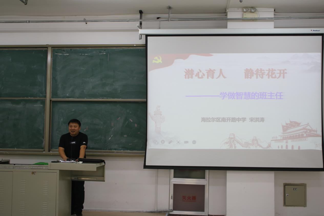 为扎实推进师范类专业认证工作,提高师范生综合育人和班级管理能力,pg游戏电子模拟器于2023年11月18日在崇文楼B101教室开展《潜心育人 静待花开》专题讲座。本次讲座由海拉尔市南开路中学一级教师、内蒙古自治区教学能手宋洪涛老师主讲,学院20级全体学生聆听讲座。